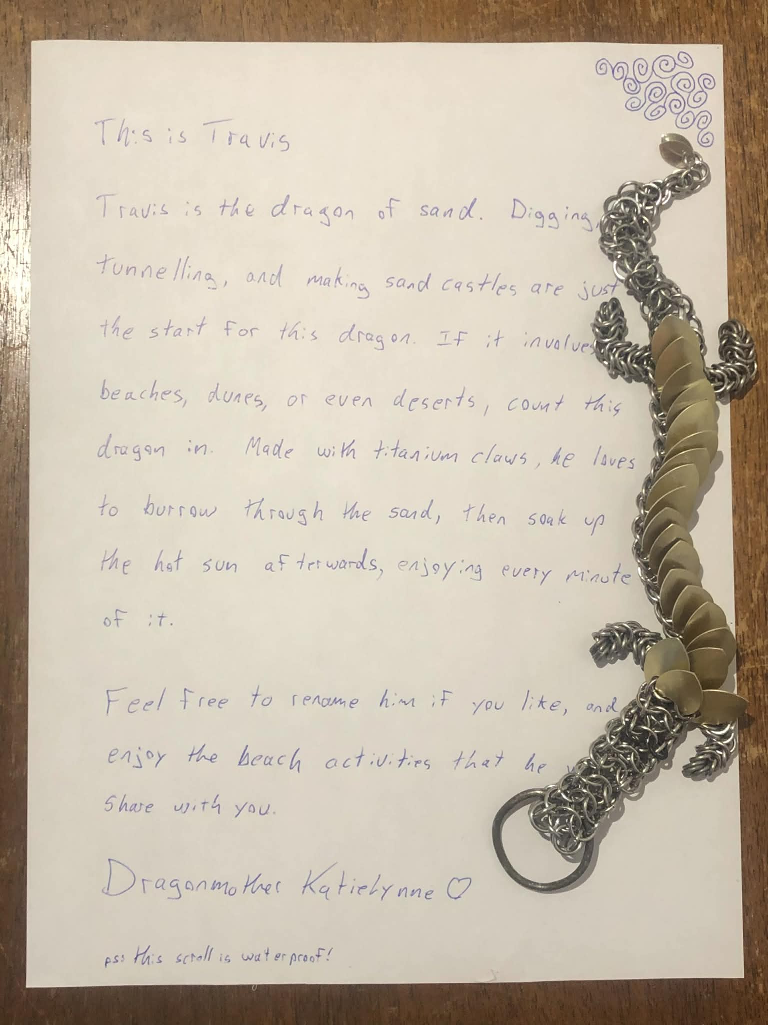 | Travis - April 8, 2026 Travis is the dragon of sand. Digging, tunnelling, and making sand castles are just the start for this dragon. If it involves beaches, dunes, or even deserts, count this dragon in. Made with titanium claws, he loves to burrow through the sand, then soak up the hot sun afterwards, enjoying every minute of it. |