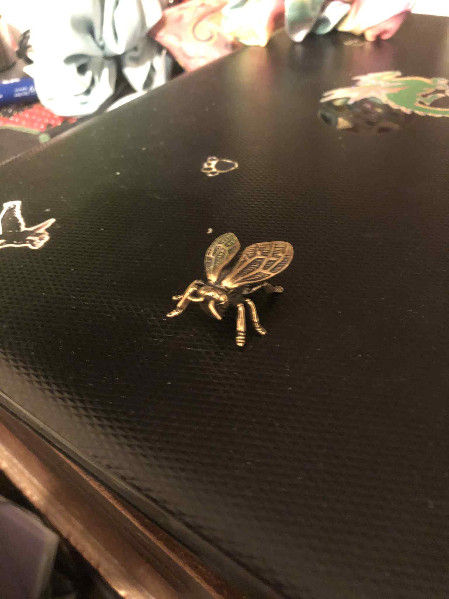 . So, in Jubilee Market, literally a short walk from the National Gallery, I found a shop that sells little brass figurines and such! And what do we have inside, but a BRONZE HOUSEFLY!!! Now, it's not quite the Ebony Fly (dndbeyond) from D&D, but it's close enough! I mean, I *could* patina it to black with liver of sulfur, but I like the bronze colour. It'll patina slightly over time