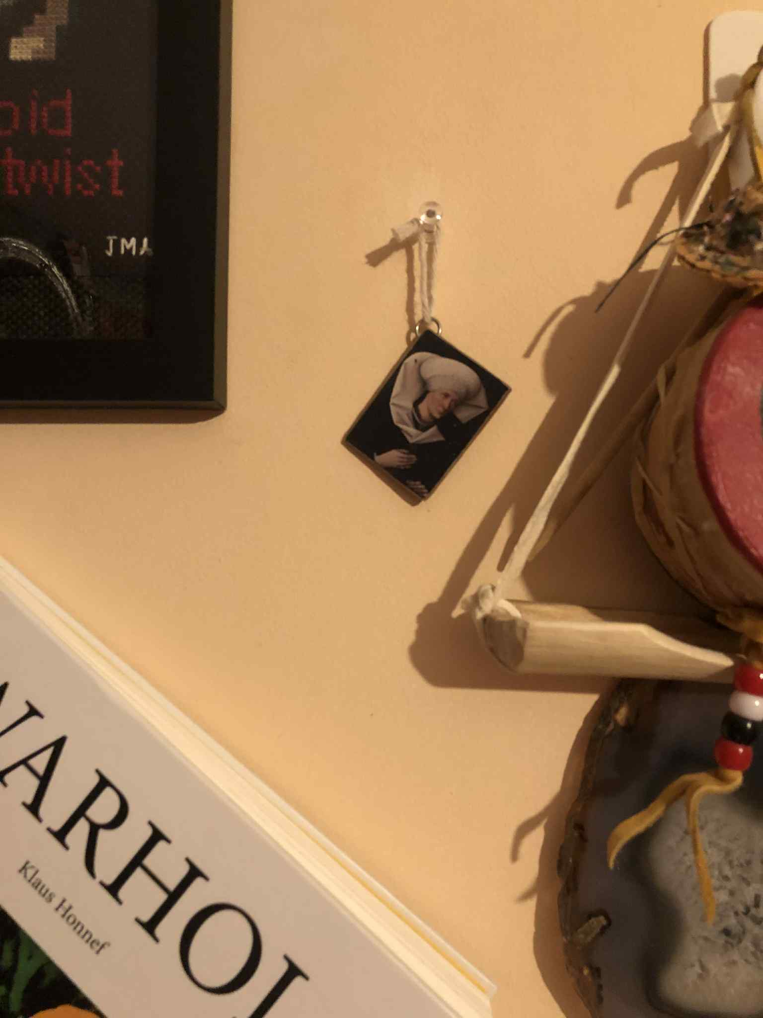 So we decided to print out a wee lil version (and soon several) of the Portrait of a Woman of the Hofer Family. Yah I know I'm enamored with this painting lol. It started out with just making a little palm-sized one to hang on the wall, with the idea/concept still fresh in my mind from the Team Sky emblem. And then after that, I decided to make a whole pile of photo ornaments, and thought... eh, I want one of these mini-paintings for the wall, let's make one more for the tree, and one liiittle tiny one to extra-strong-topcoat (that was actually made at the same time as the main one, as a test to see if the varnish would mess with the printout) to have on my keys. An so it was.