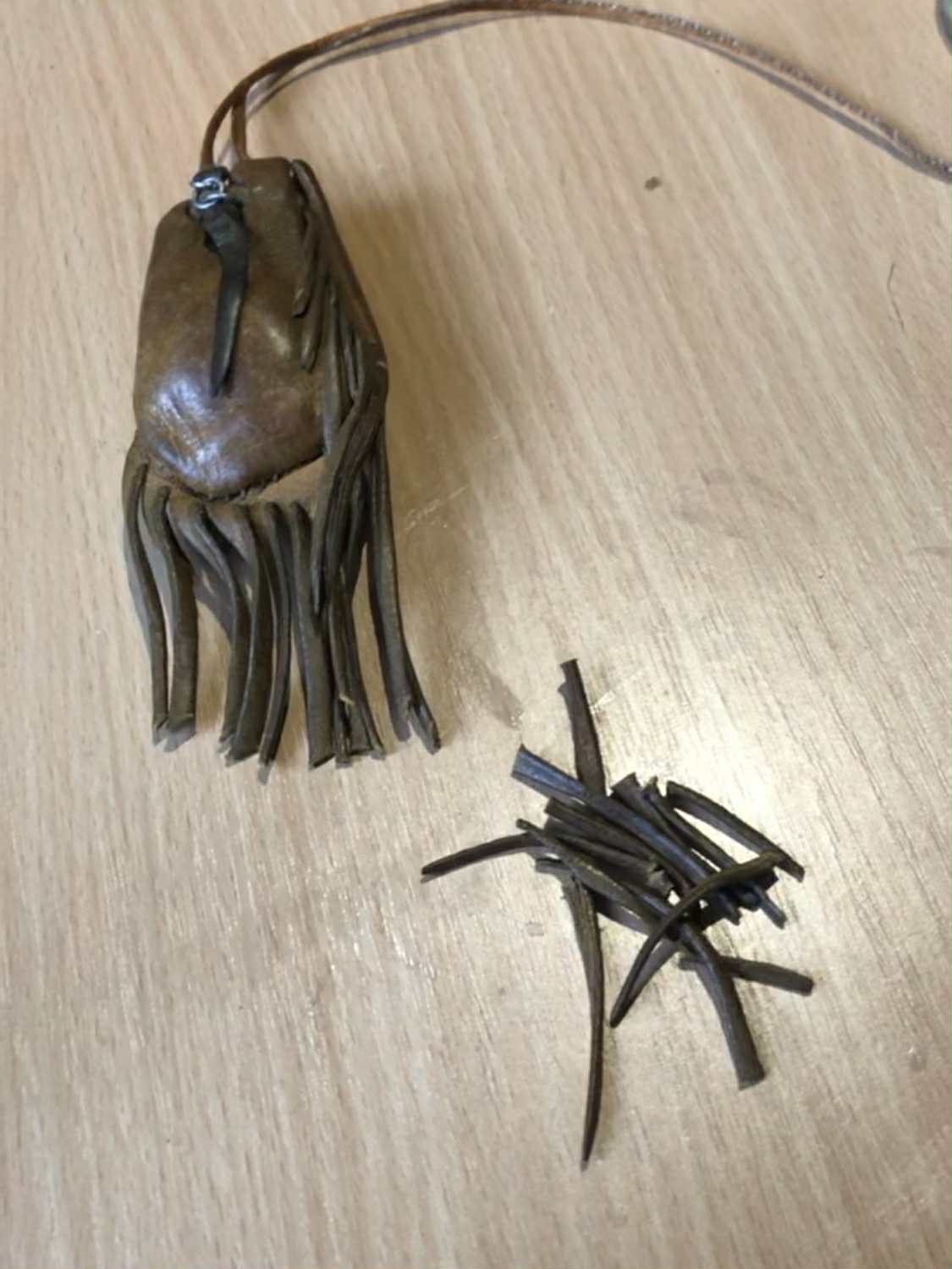 | My Medicine bag. Originally bought to be my Jack Stone bag, everyone kept calling it a Medicine bag, and so I spoke with my spiritual Cree Ancestors, who helped me in turning it into a Medicine bag as well. I wore it almost daily (just not at work really), from 2019 all the way through to 2023, where over the years of being worn, getting wet, drying out, being rained on, being swam with, it began to get brittle, and the tips of the fringes began wanting to curl up and break off. I came to the conclusion that it was time to condition the leather. I began hunting for leather balms in England, and found this simple beeswax balm, and WOW did it make a change! As you can see from the original pic, it went from a bright yellow new leather, to being worn and coloured from years against the skin and in the weather, which was all fine and such. Several years after, the fringes (clearly stretched from their original length) began to curl and get brittle, the tips of some of them even being lost to time. I made several attempts to flatten them in a book, but age would have none of that, and they began to get curly and kinked. I didn't think to take a photo of the Medicine bag right before conditioning it, but found a picture that I had taken about two months earlier (see pic 2) to show the change. If you zoom in on the pic, you can see the tips growing cracks, and this pic was likely taken after taking the time to try to straighten out the strands for exactly that picture lol. If left, they would get much curlier. And so, we ordered the balm, and gave the leather a good cleaning with water and paper towel, scrubbing it down thoroughly, and left it to dry overnight. The next day (the November 7 listed below), we gave the entire bag a thorough conditioning, rubbing the beeswax deep into the leather, every crease and edge, every surface and strand. And WOW is there a difference. I can almost feel the leather relaxing after years of being hunched over and bent, and the balsam should seal the surface from regular moisture and rain. I get many compliments on this bag, so it would be sad to see it fall apart and crack, and I'm so glad that I took the time to clean and condition the leather for the years to come. Should it need to be replaced down the road, I plan to copy the same pattern, but this one will do us for many years yet, with regular conditioning. As per the instructions on the back of the balsam, I gave it two applications of the conditioning, with buffing of the surface after each application. I carefully worked it into each individual fringe and over the entire surface and drawstring, and the leather feels so much smoother and more relaxed. I will keep up the conditioning several times a year as per the instructions on the balm, which will hopefully keep my Medicine bag in good condition for a long time to come. Bought February 16, 2019, reconditioned November 7, 2023 |