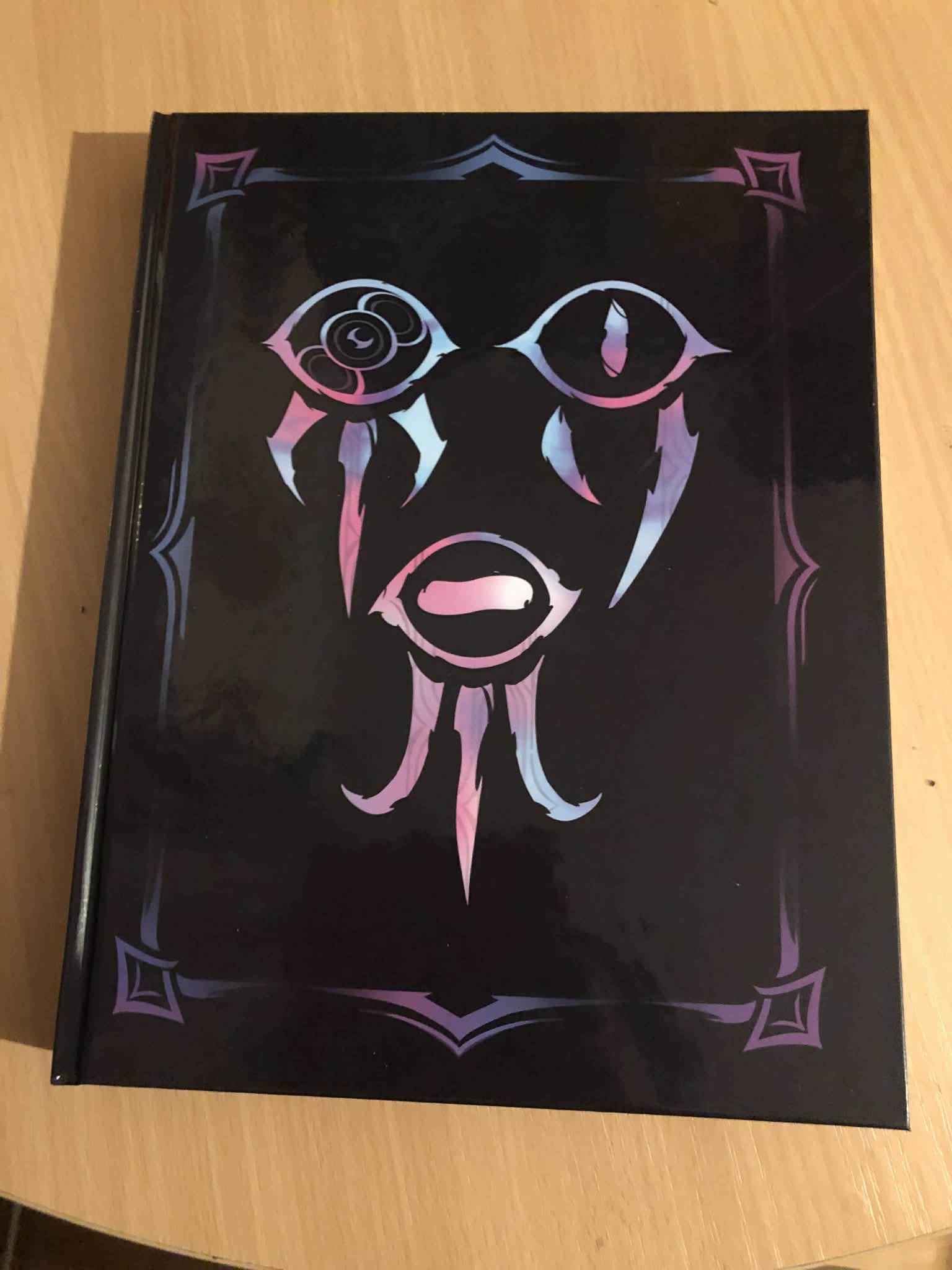 Added amusement, the book comes with a reversable dust cover, with the alternate cover having been one drawn by our Jester Lavorre, and the text and comments replaced by things written by her, and praise from the other members of the Mighty Nein and friends. Naturally, the alternate cover is the one that must be displayed.