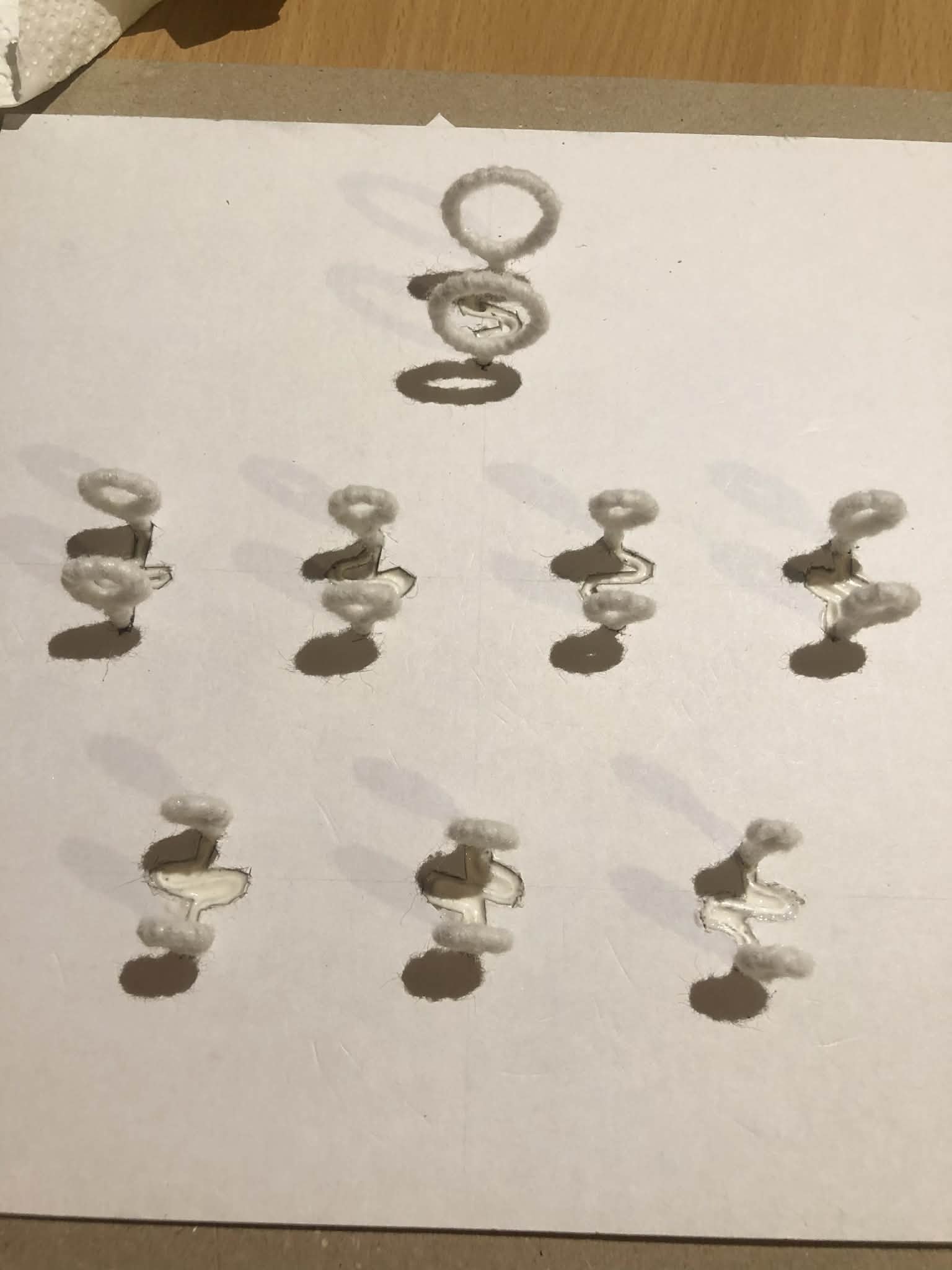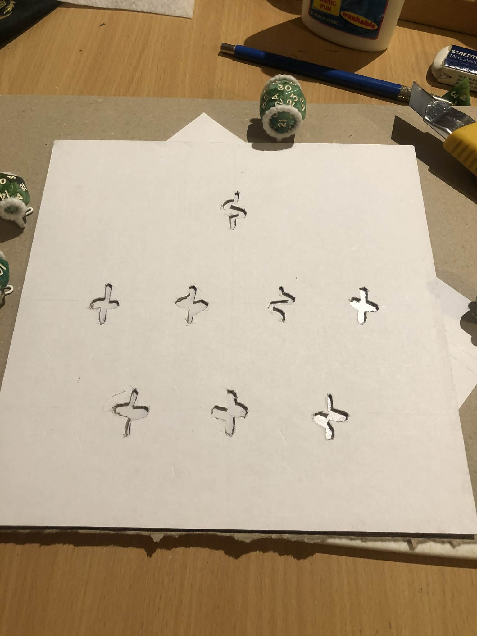 Whew, ok, with all of that discovered... and with the added unexpected surprise bonus of finding the INFO SHEET!!!!, we can set about making a frame for these. Firstly, let's fold that placeholder info sheet in half to match the size of the original to plan the frame, and start on the wirework. At the same time, we can make the replacement inserts, thanks to the blank template on DiceCollector (DiceCollector.com). And with the templates and sproingy wires done, we covered the wire in felt to protect the dice. |